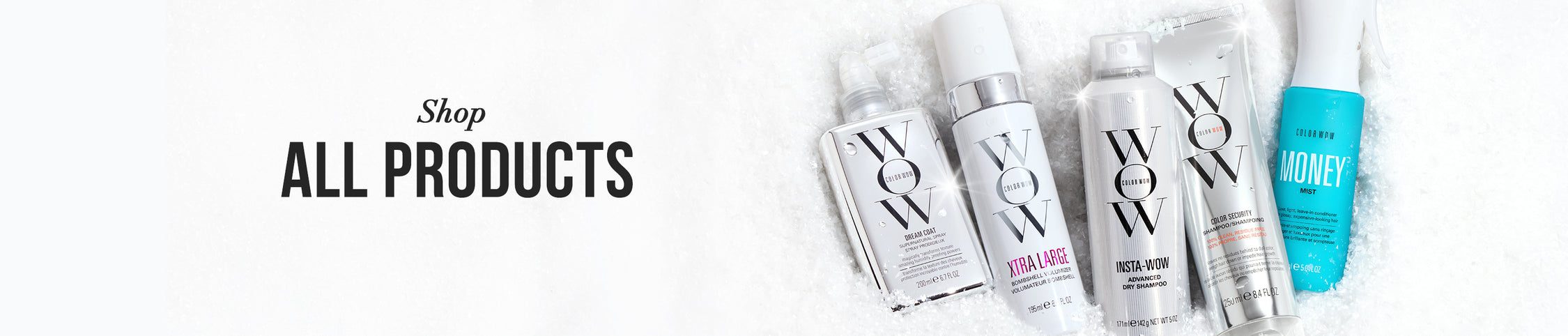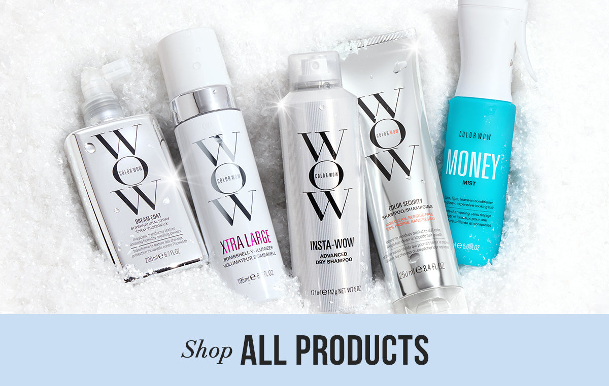 Color Wow Root cover up in all shades stacked (Platinum, Blonde, Dark Blonde, Red, Light Brown, Medium Brown, Dark Brown, and Black) on a white background with a red Allure best of beauty Hall of Fame AwardRoot Cover Up