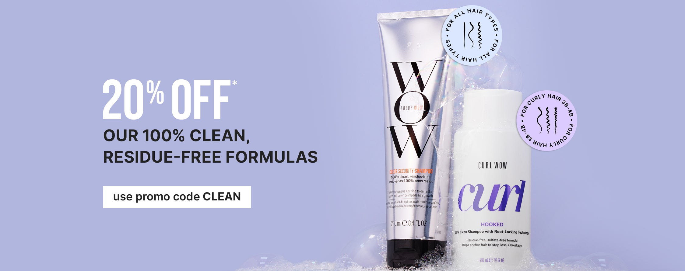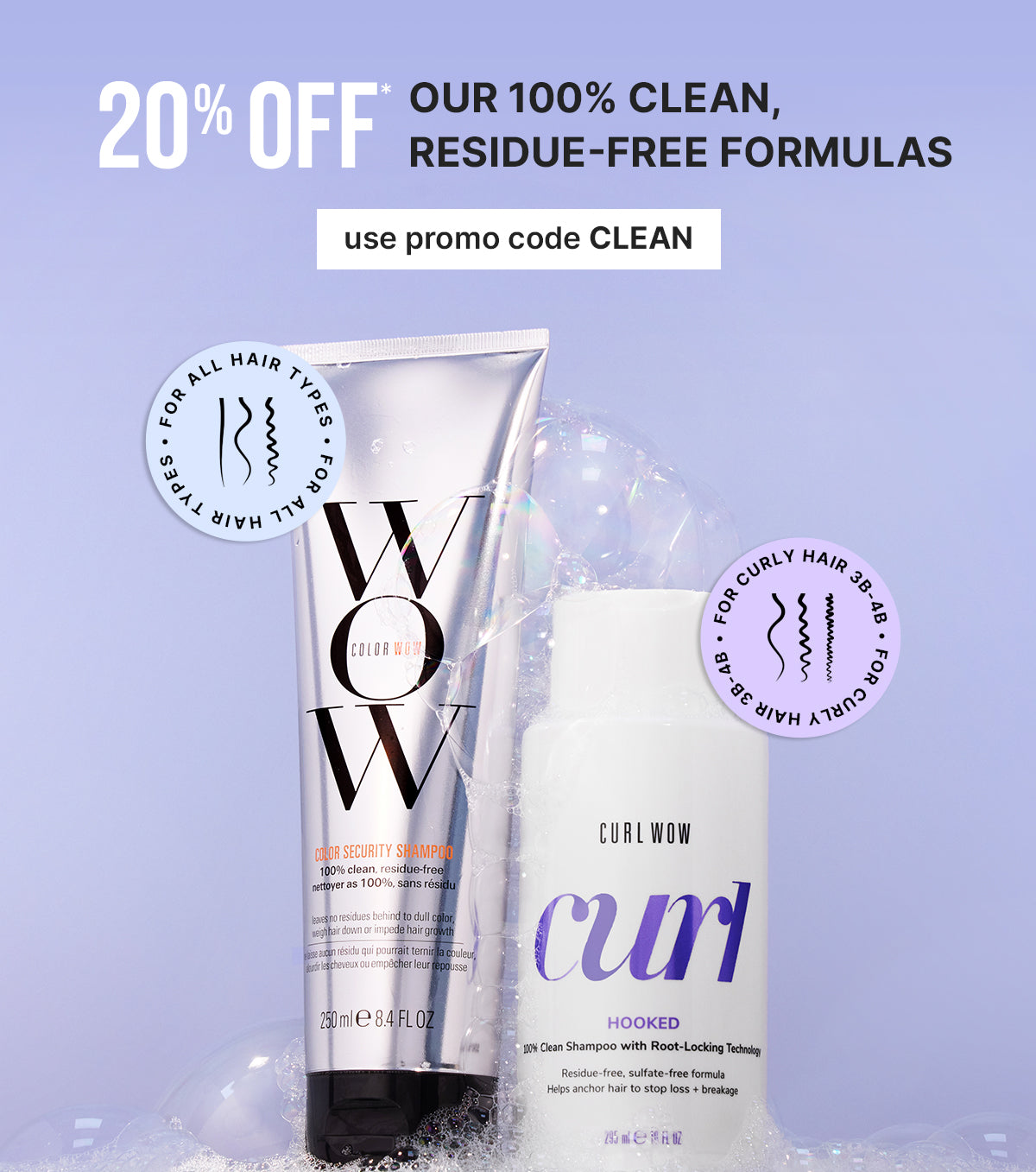 *Does not apply to orders before you 8/2/24. 20% OFF code for Full Size Color Security Shampoo (8.4 fl oz/ 250ml), or Full Size Hooked (10 fl oz / 295ml), good through 9/3/24. Promotional codes can't be combined. Limit to one use per customer. Valid exclusively on colorwowhair.com. Salons excluded. While supplies last.